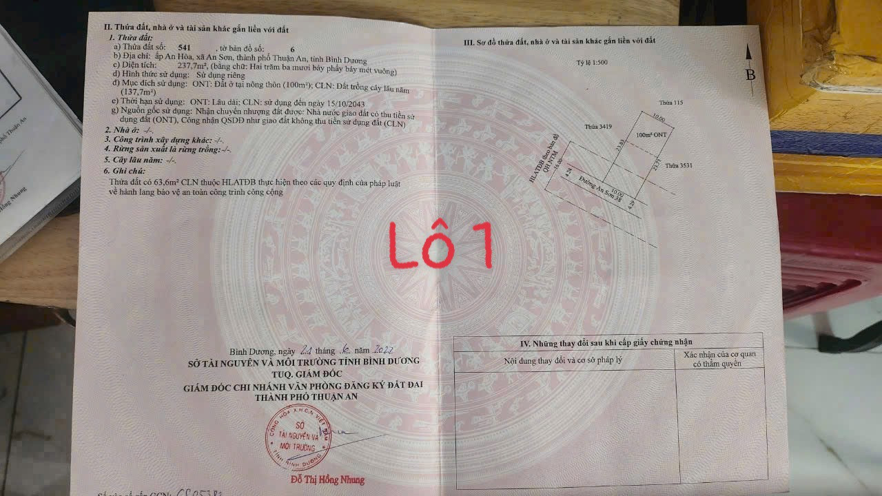 - Mỗi sổ: 10x24m = 237m2 thổ cư 100m2/lô