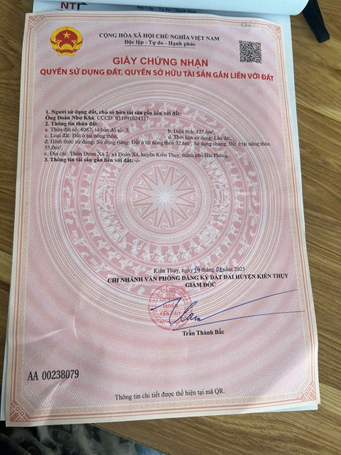 BÁN 72.6M ĐẤT TẠI ĐOÀN XÁ – KIẾN THỤY