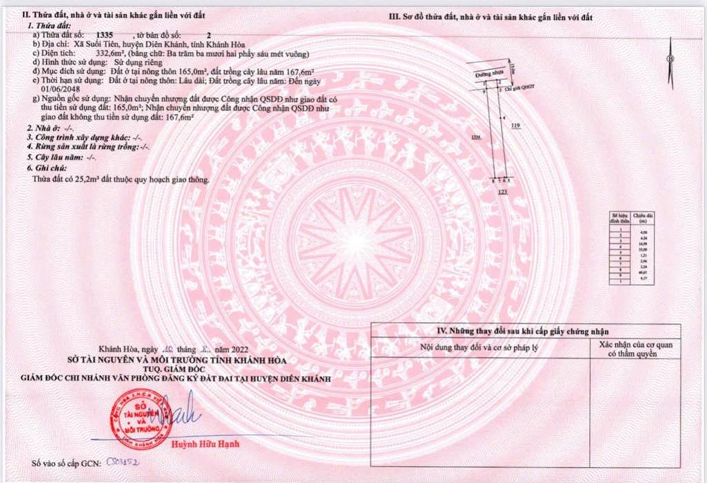 Lô 2: 332.6m² (165m² thổ cư).