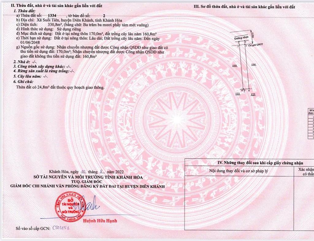 Lô 3: 330.8m² (170m² thổ cư).