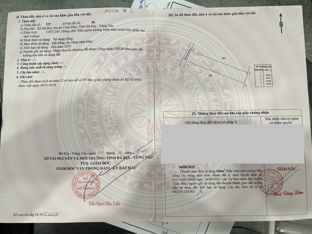Bán 3lô liền kề có 100m thổ cư mỗi lô Xã Đá bạc . Đường bê tông xe tải vi vu