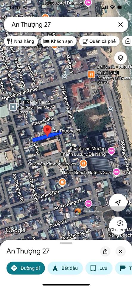 - Vị trí: MT đường An Thượng 27, đường 5m5 lề 3m, đối diện trường học, sát biển Mỹ Khê, ngay sau khách sạn Mường Thanh, nằm trong khu phố du lịch sầm uất. Phù hợp mua ở, đầu tư, xây căn hộ lưu trú...