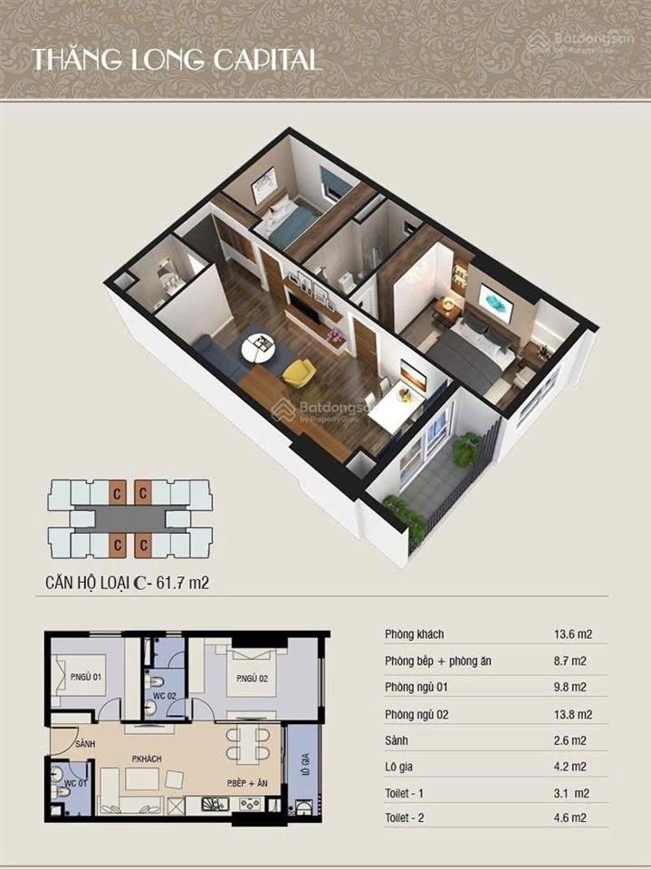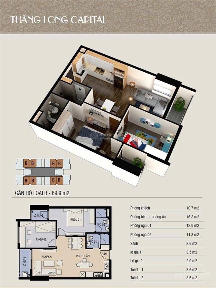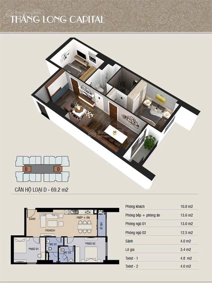 Tôi cần bán gấp căn hộ, 2 phòng ngủ, 2 vệ sinh tòa nhà T4 Thăng Long Capital của CĐT Phúc Hà.