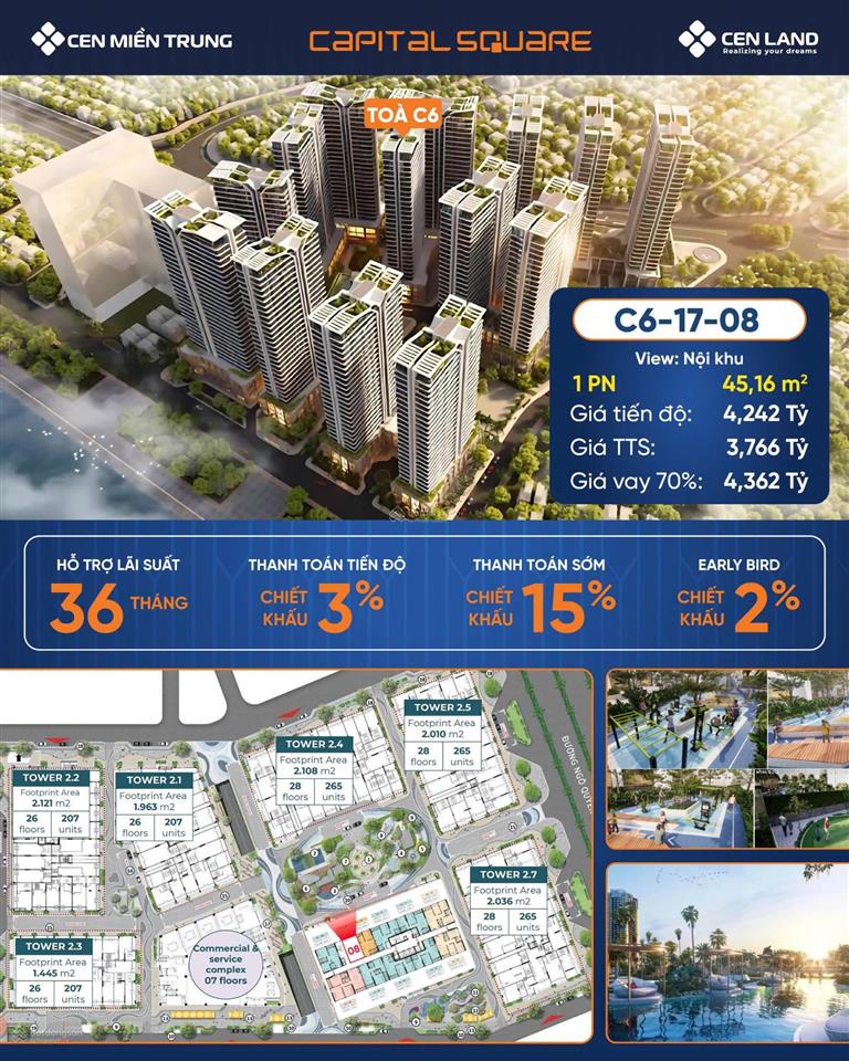 Bán căn hộ Capital Square C6-17-08 1 phòng ngủ View nội khu Giá chỉ 3,76 tỷ