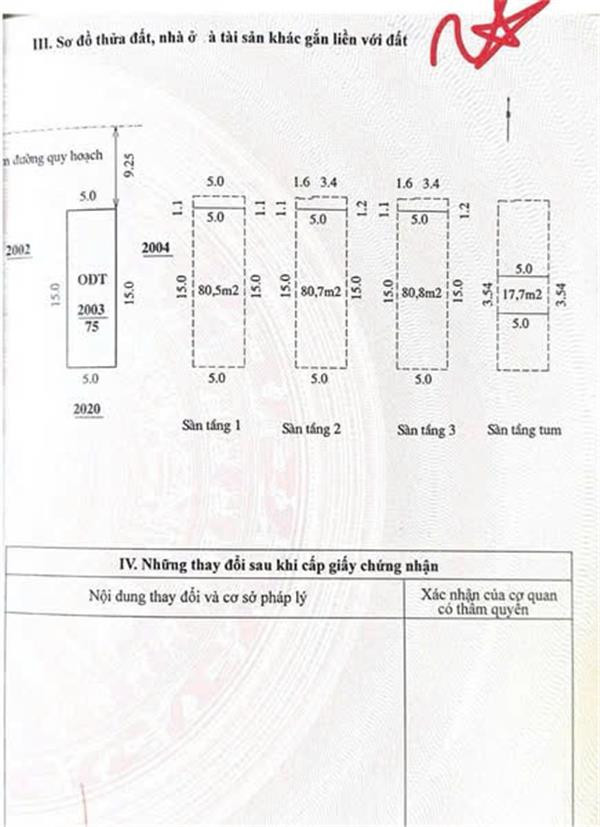 Diện tích: 75m2 - Diện tích sàn đã hoàn công và đưa vào sổ: 260m2