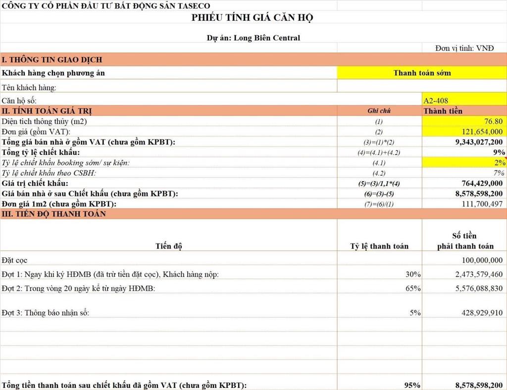 - Dự án Long Biên Central do Taseco Land đầu tư.