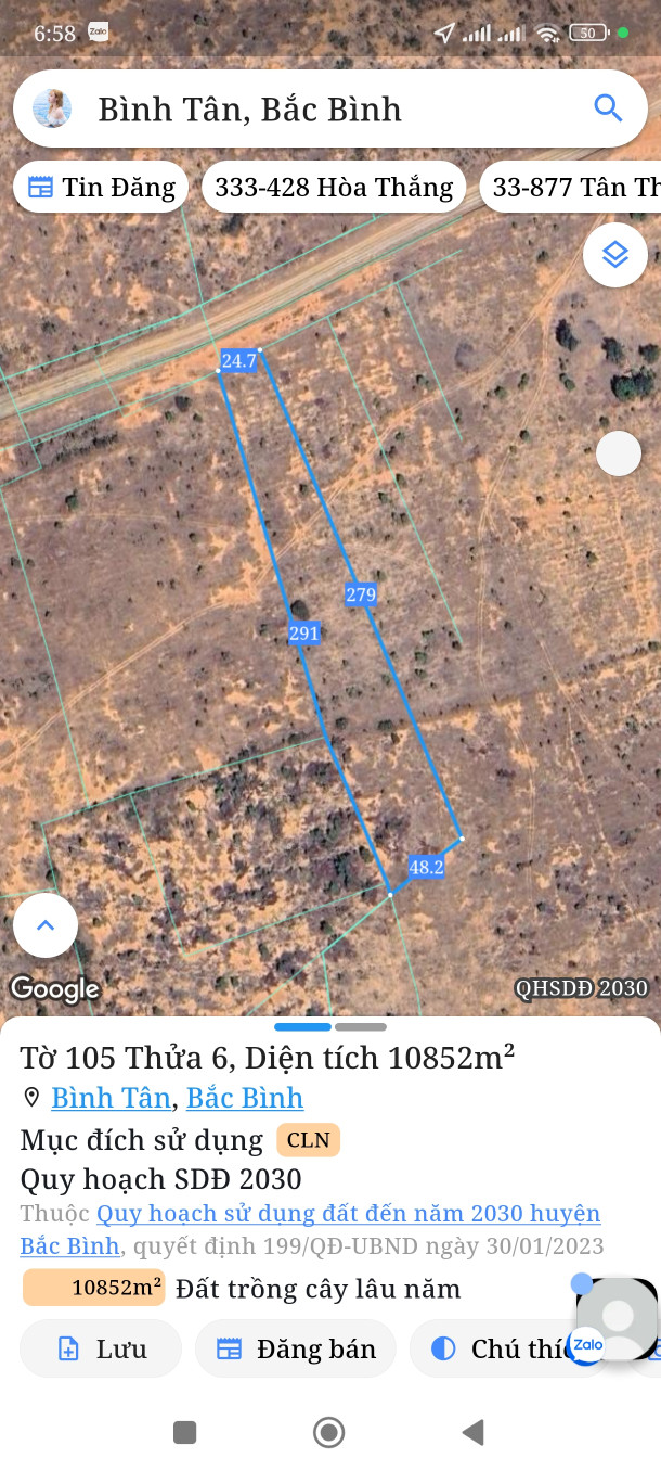 Bán đất 10852m² ngang 25m giá 705.38 triệu Xã Sông Lũy
