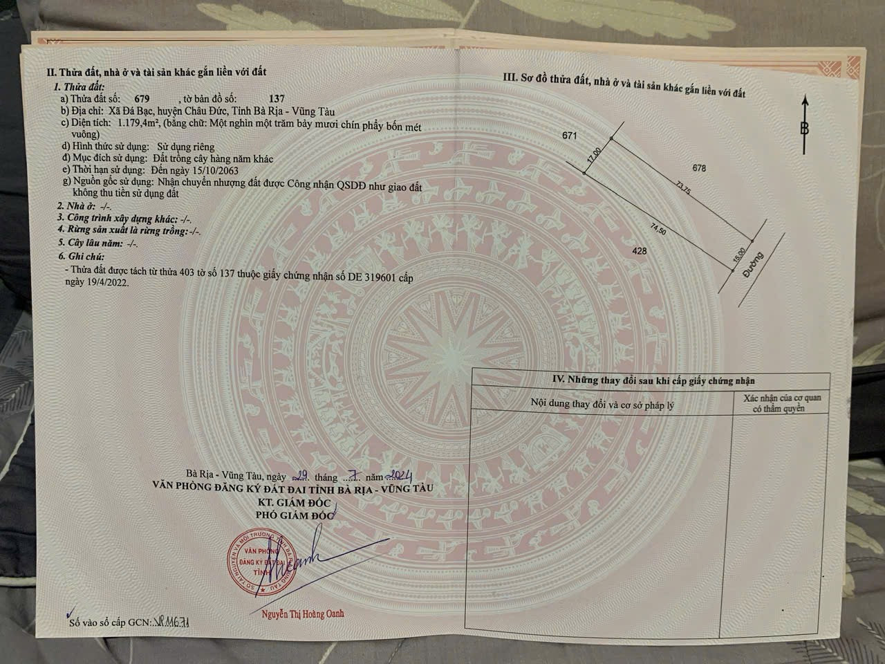 Vị trí trên đồi view hồ Đá Bàng, đất phủ hồng khu dân cư, hiện trạng cây lâu năm, chuyển mục đích lên thổ cư 1tr3/m2. Lh: 0917316461