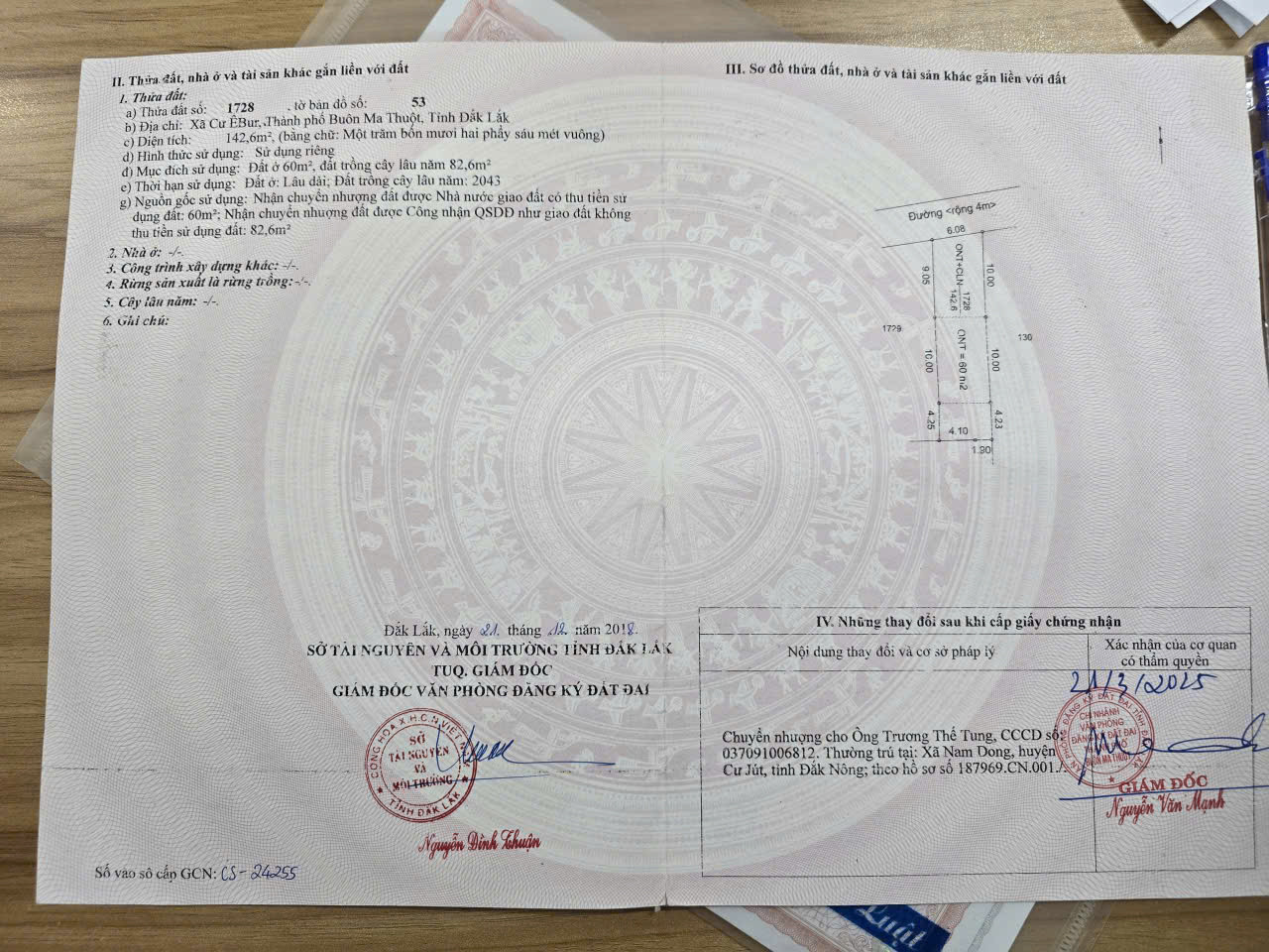 Dt: 6x24m. Tc60. Hướng Bắc