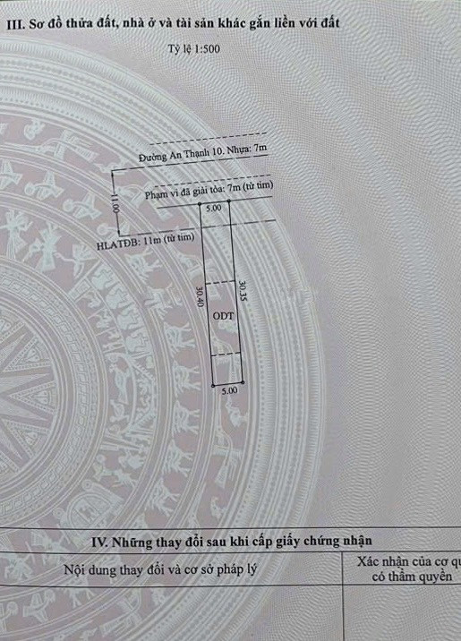 - DT: 5x30m = 151m2 thổ cư 60m2