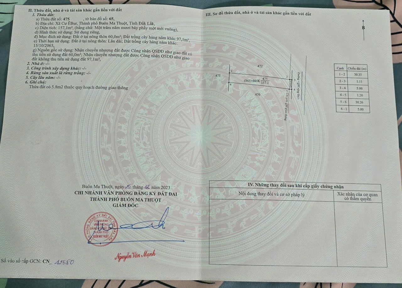 Bán đất 157.1m² ngang 5m giá 730 triệu Phường Buôn Ma Thuột