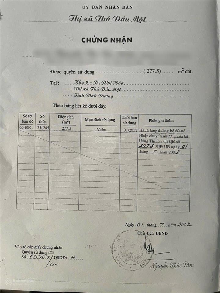 - DT: 277m² (5x55m) thổ cư 160m².