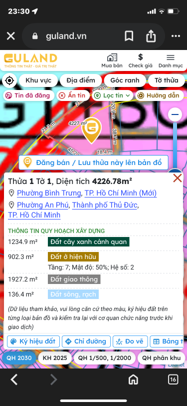 Bán đất mặt tiền sông sài gòn và sông rạch chiếc sau căn hộ The Vista đường Số 11 Phường An Phú Quận 2.
