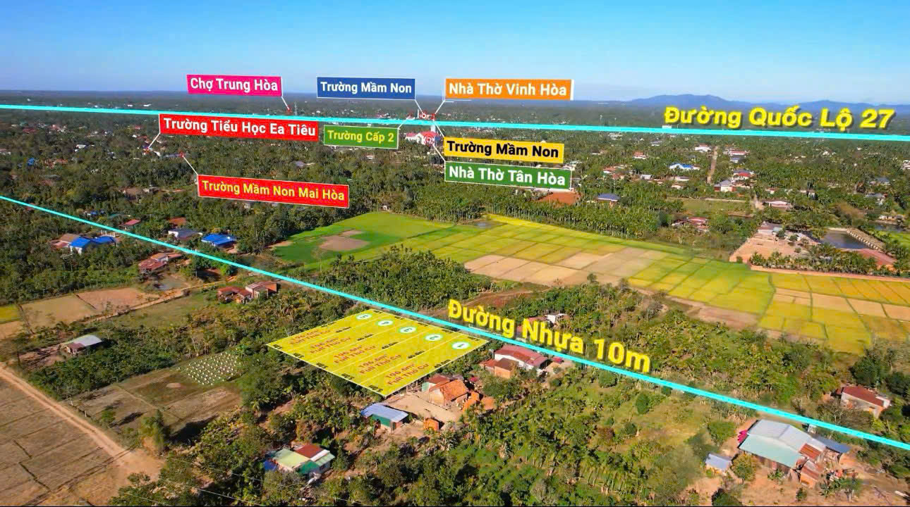 Lốc 5 lô mặt tiền đường nhựa buôn HLuk EaTieu, cách ql 27 và chợ Trung Hòa và tất cả tiện ích khoảng 700m. Diện tích. 5x40 tc full. Sẵn sổ. Giá. 4xx tr 1 lô, thích hợp làm nhà ở hoặc đầu tư lâu dài