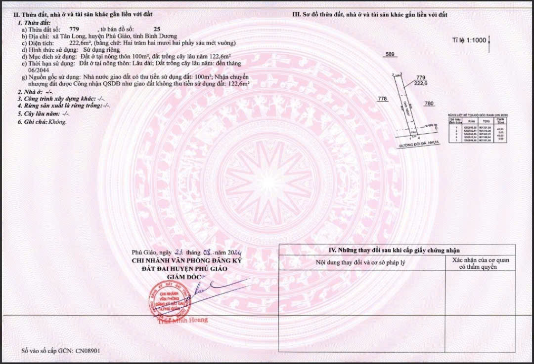 Đất mặt tiền nhựa trung tâm Tân Long