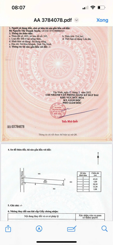 - DT: 5x43 tổng 214m2 thổ