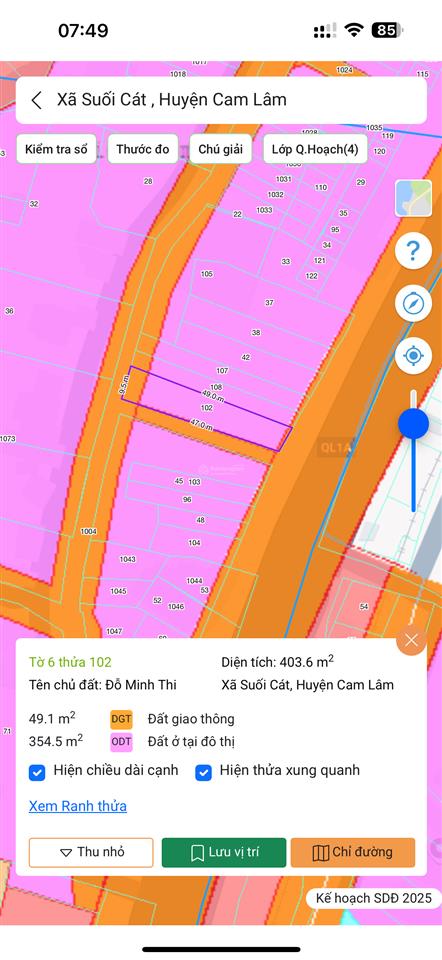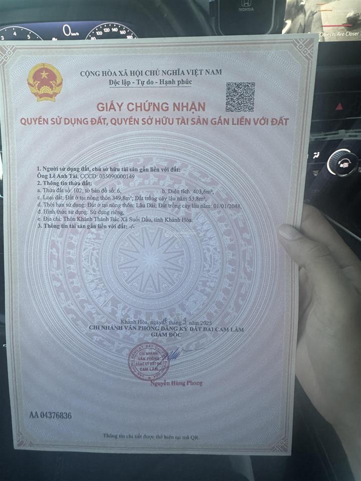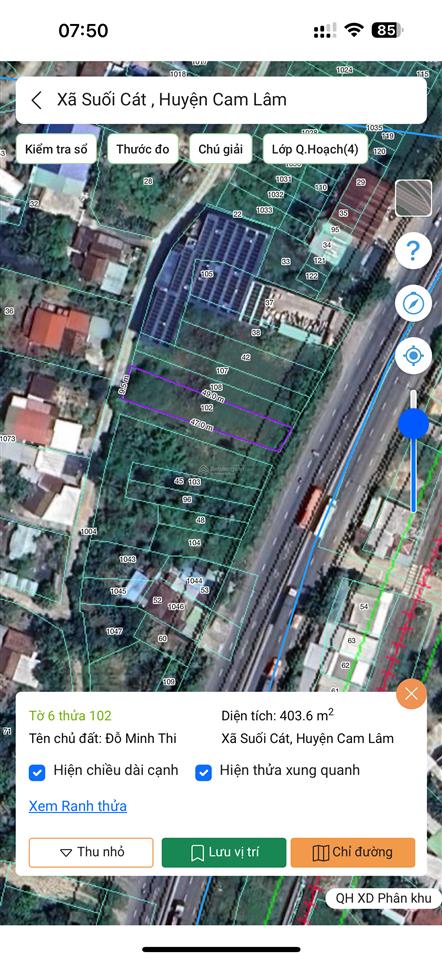 Đất nền có diện tích 403,6 m², 350m² TC tại Quốc lộ 1A, Xã Suối Cát, Cam Lâm, Khánh Hòa.