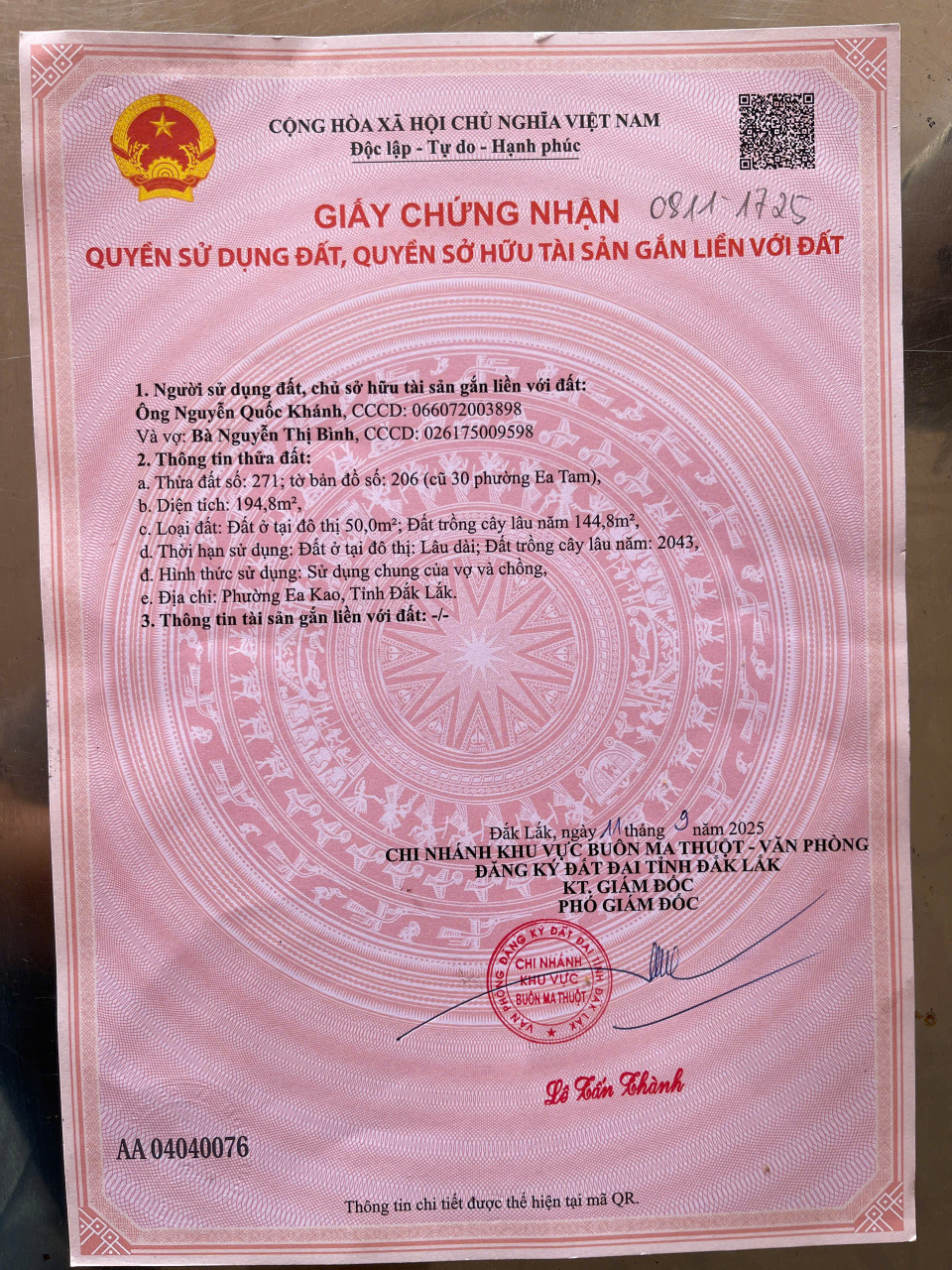 bán đất 396m² ngang 8m giá 3.6 tỷ tại Phường Ea Tam Thành phố Buôn Ma Thuột