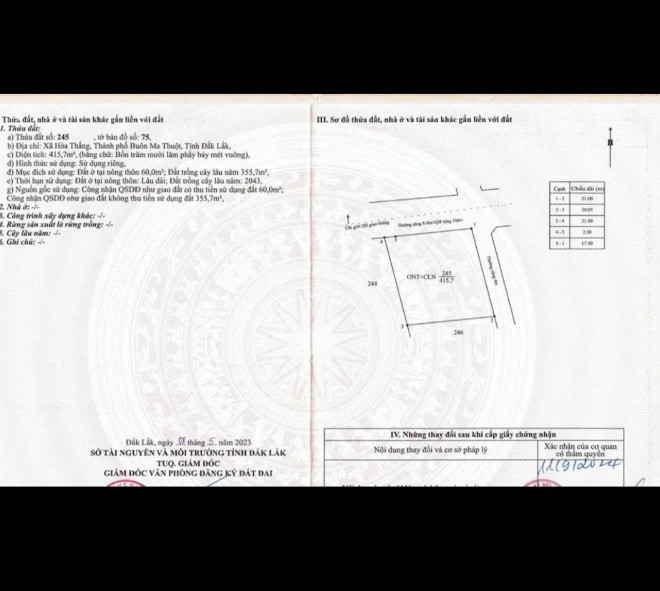 - DT : 20 *21, thổ cư 60m2, hướng Bắc và Đông