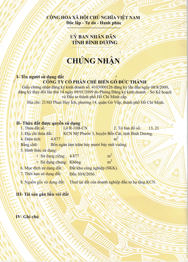 • Thời hạn sử dụng: Đến ngày 30/6/2056