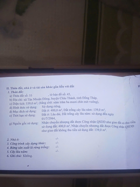 • Diện tích thổ cư: 400m² (đã lên thổ cư sẵn)