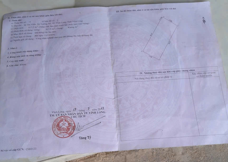 (Ncc) Bán đất (618 m2) gần đường Bờ Kè Cồn Chim, phường Trường An nay là Phường Long Châu, tình Vĩnh Long (116)