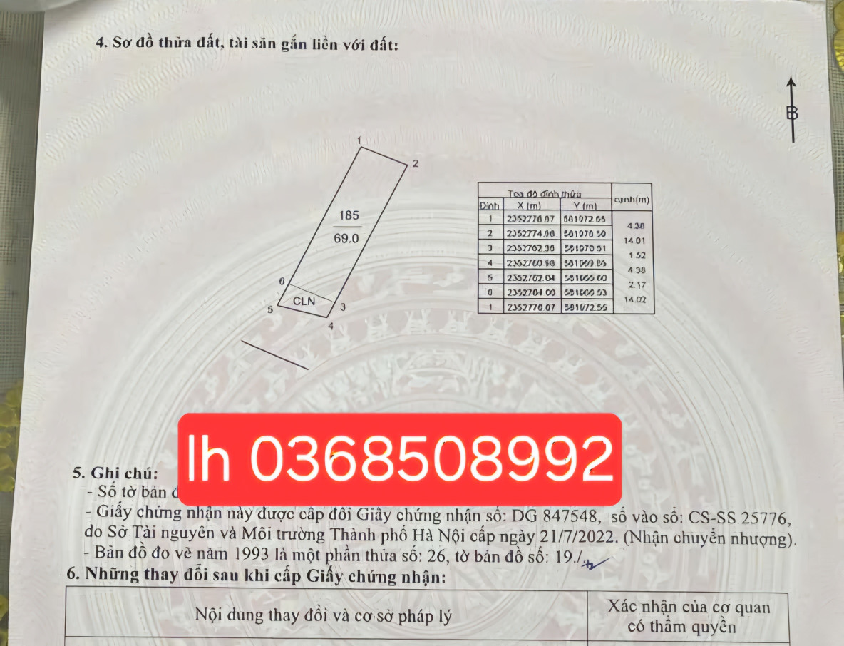 Diện tích 69m trong đó có 60 thổ cư