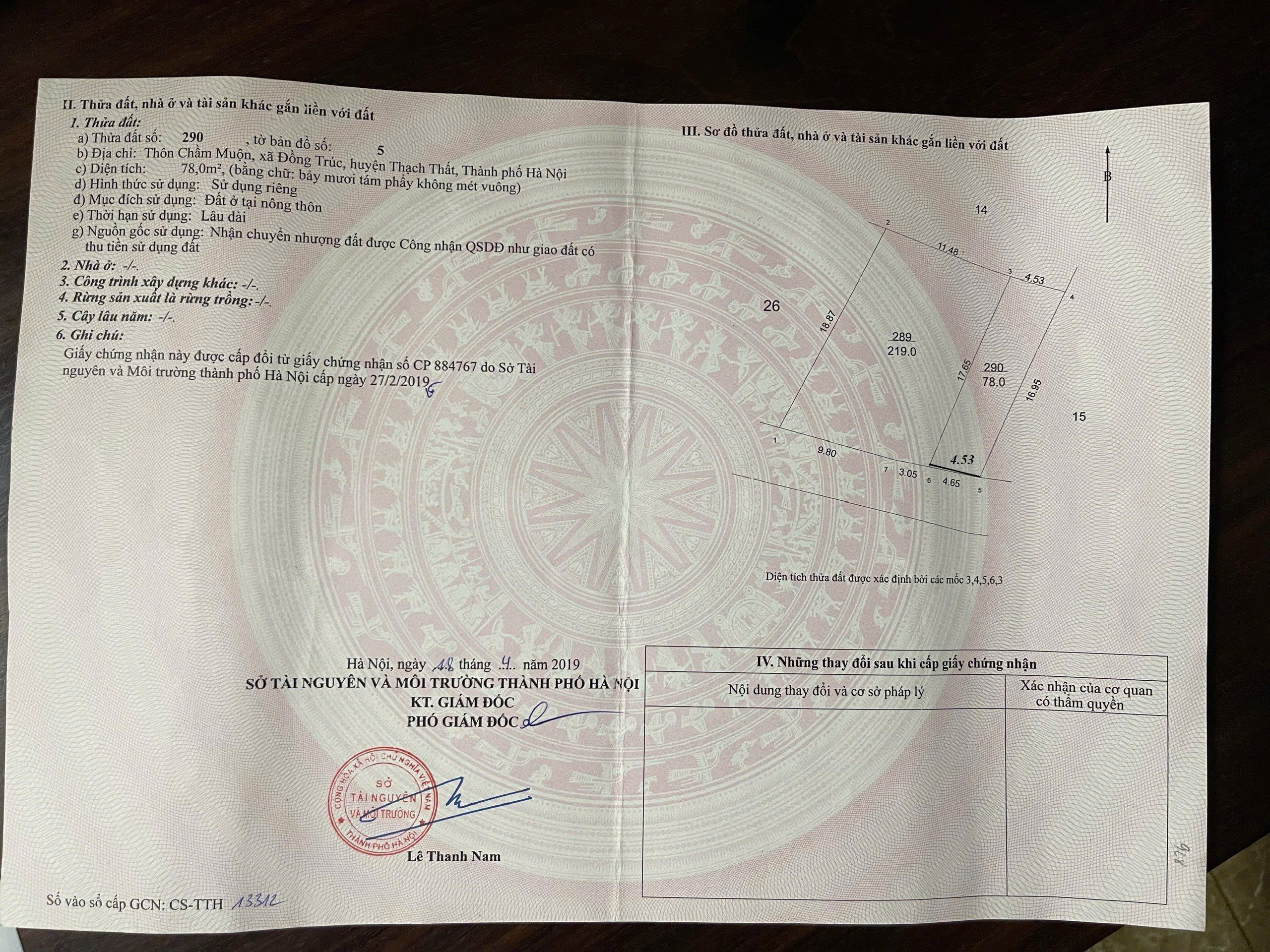 Diện tích sổ 78m2 thực tế 75,4 m đang xin cấp sổ mới