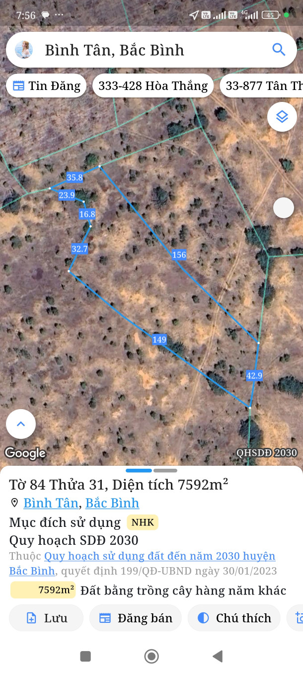 Bán đất 7592m² giá 455.52 triệu Xã Sông Lũy
