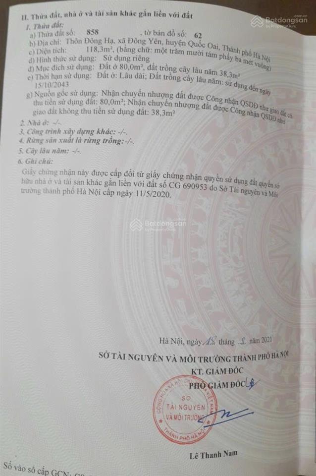 Đất nền tại Xã Đông Yên, Quốc Oai, Hà Nội với diện tích 118m², lô góc 2 mặt tiền mà giá 3,5 tỷ VND.