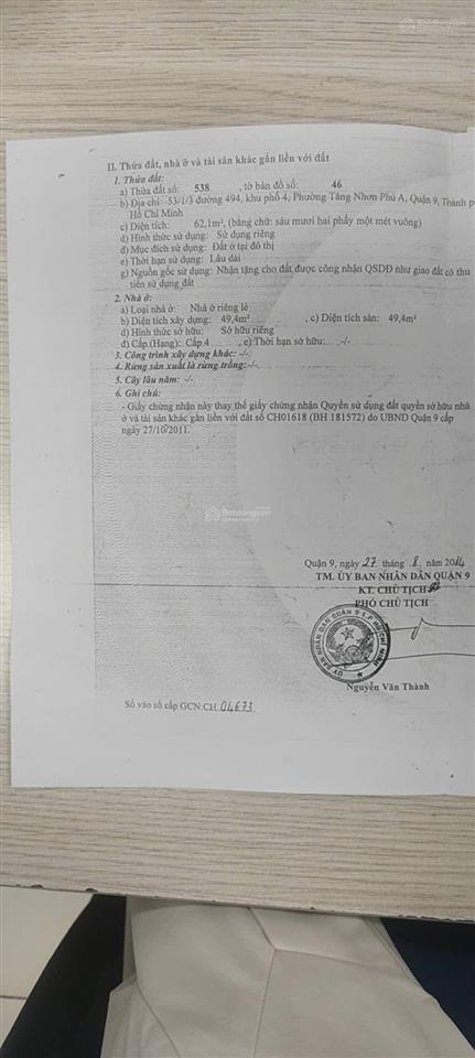 Nắm chủ bán đất hẻm xe hơi đường 494 phường TNPA, Quận 9.