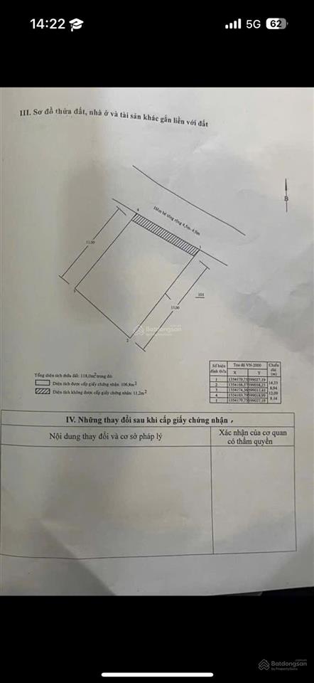 Diện tích 116.8m² ngang 9m. Trong đó có 30m thổ cư còn lại CLN phù hợp thổ cư.