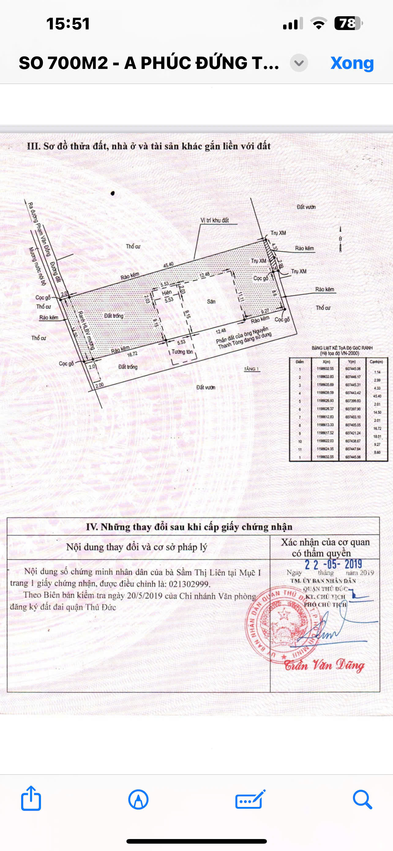 - Diện tích: Ngang 47 mét, dài 21 mét, tổng diện tích công nhận 978m², trong đó thổ cư 200m². Đã có sổ 700m2 còn lại 278m2 giấy tay (sở hữu của công ty)