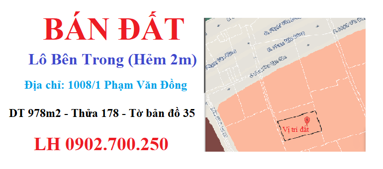 - Vị trí đẹp: Hẻm 1008/1 Phạm Văn Đồng, sát bên tòa nhà căn hộ ST Moritz của Đất Xanh.