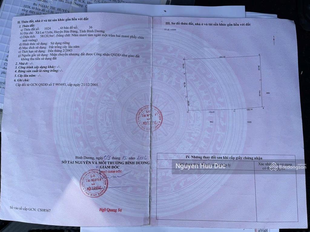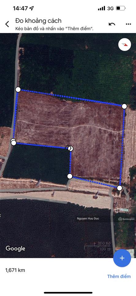 DT: 200 nở hậu 550 x 400 = 101047.7m² (hơn 10 ha cây lâu năm) giá bán 2,4tr/m² (thương lượng) hiện trạng đất trống (đất quy hoạch đất ở).