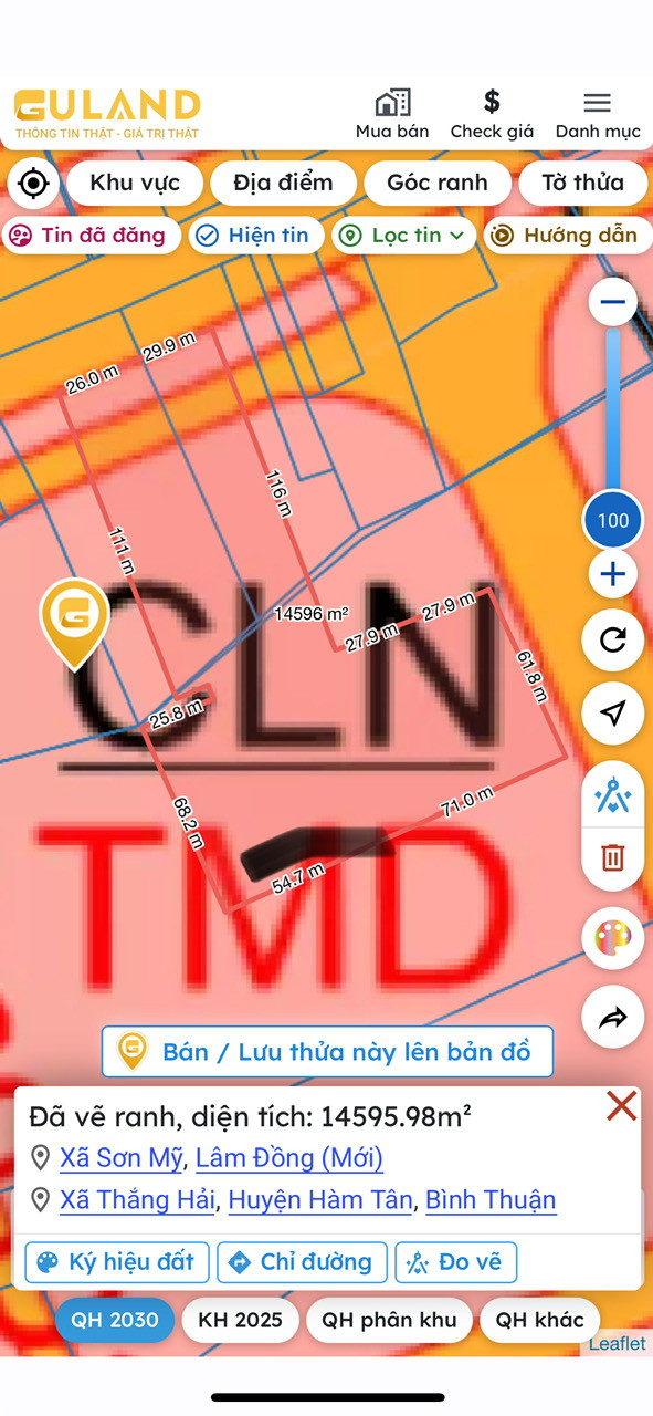 BÁN ĐẤT LỚN 1,45ha (Hai mặt tiền: đường nhựa Ql55 56m và đường QH ra biển 62m) xã Sơn Mỹ, tỉnh Lâm Đồng (mới) gần ranh TP. HCM (Vũng Tàu), có 800m2 thổ cư giá 26tỷ