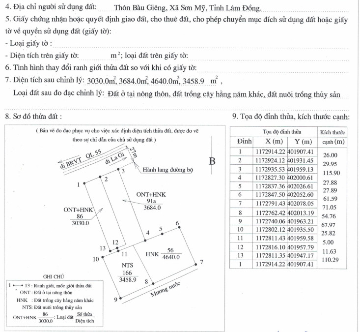 Mặt tiền đường QL55: 56m (chiều dài hơn 110m)