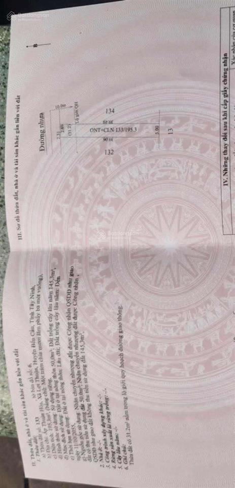 Đất nền 195.3m² siêu đẹp tại Xã Lợi Thuận, Bến Cầu, Tây Ninh. Pháp lý đầy đủ, sổ đỏ sẵn sàng. Mặt tiền đường nhựa ngang 5 mét, dài 40, có tường rào sẵn, cực kì thuận lợi cho việc xây dựng. Ra mặt đường lớn khoảng 50 mét, nằm trong khu dân cư hiện hữu, không mồ mã, gần chợ Bàu Gõ, xung quanh có trường học, tiện ích đầy đủ. Giá đầu tư 650 triệu VND. Liên hệ ngay Lâm qua số để biết thêm chi tiết.