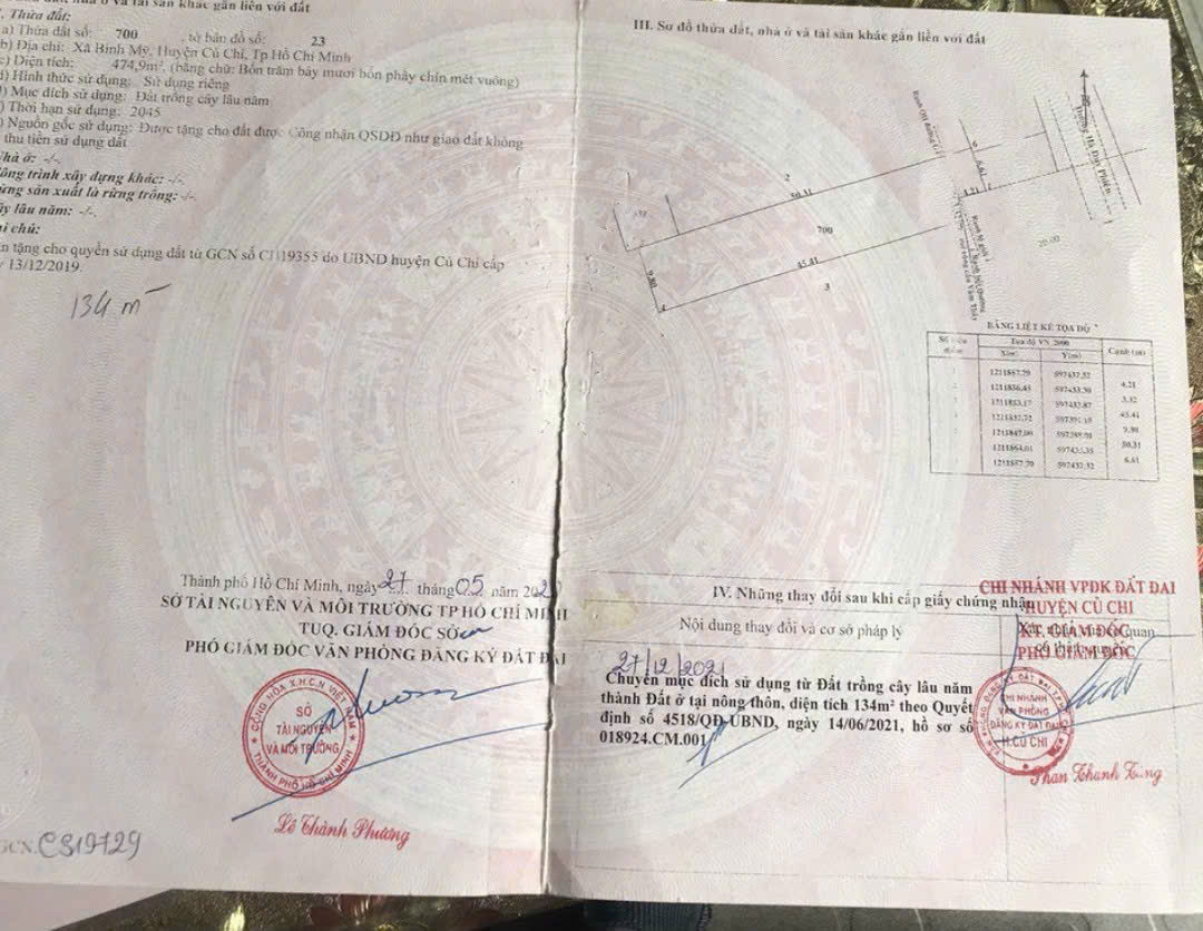 Diện tích: 10x65m (CN 10x50 = 475m²), có 134m² thổ cư.