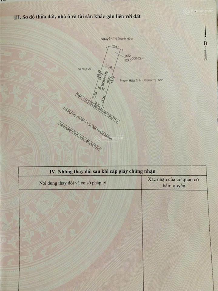 Cần bán lô đất mặt tiền đường Mỹ Phước Tân Vạn Phường Phú Mỹ, TDM, Bình Dương.