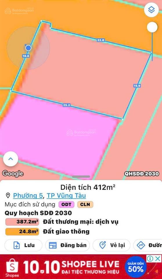 - Diện tích: 412m² (ngang 16m x dài 25m).