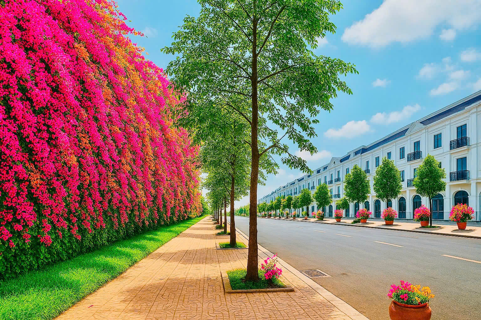 Đường trước nhà: 13,5m - 18m - đối diện hoa viên