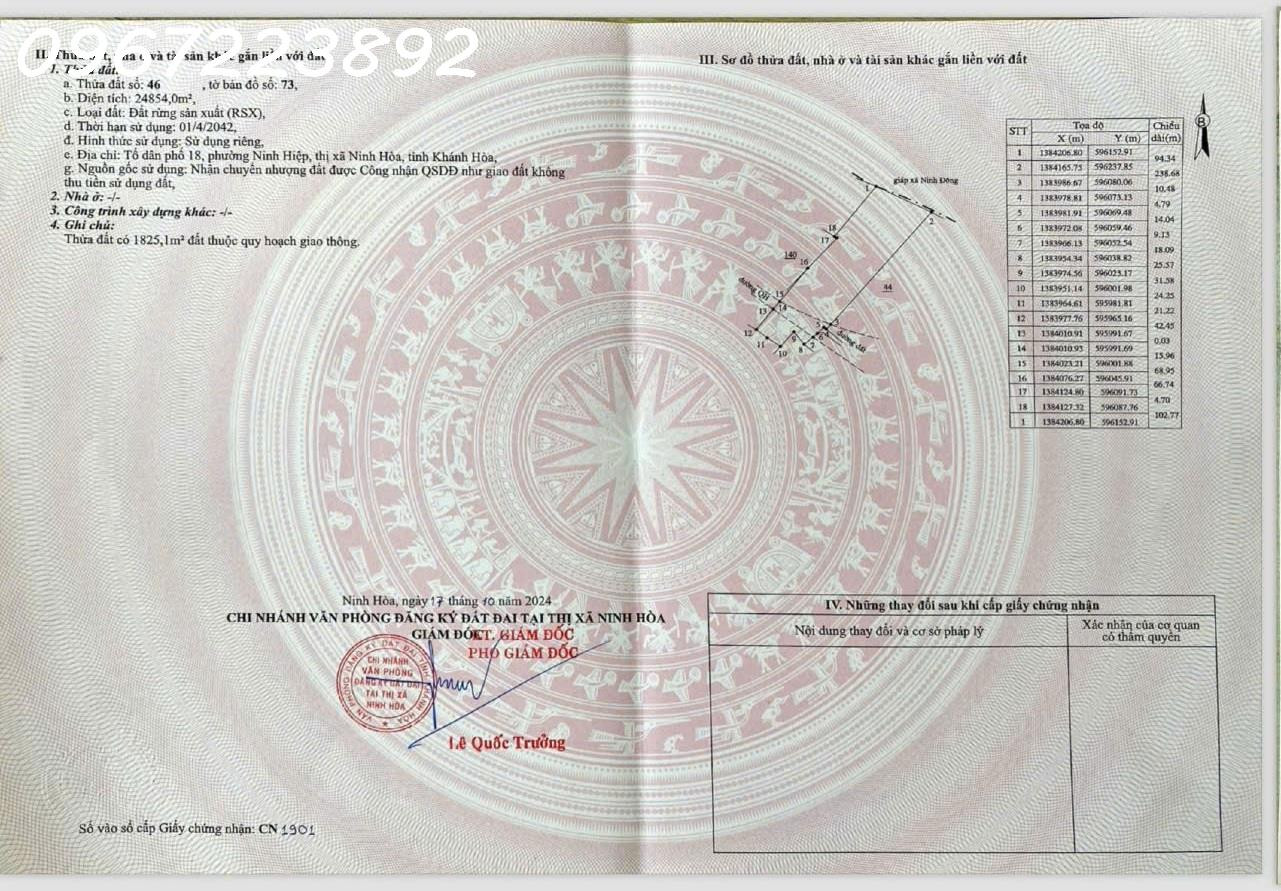 Cần bán lô đất phường Ninh Hiệp (giáp xã Ninh Đông) Thị Xã Ninh Hoà, Khánh Hòa. Đất rừng sản xuất (RSX).