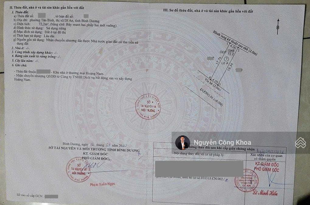 Bán đất gần đường Nguyễn Thị Tươi 200m, P. Tân Bình, Tp. Dĩ An.