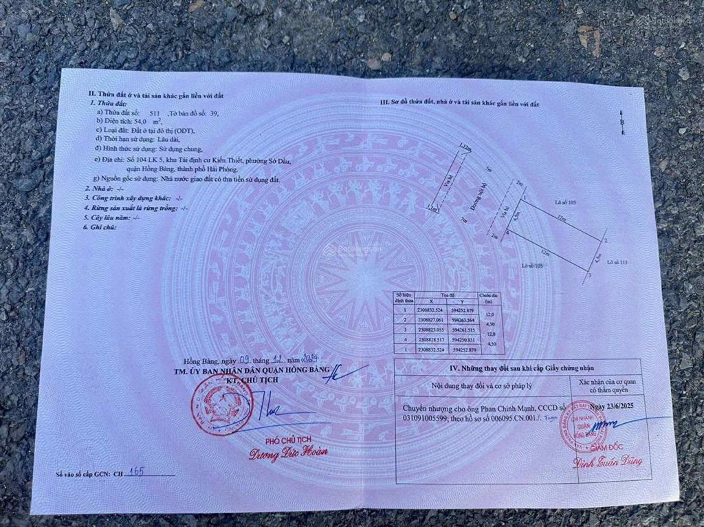 Vị trí: Khu tái định cư Kiến Thiết Sở Dầu Hồng Bàng Hải Phòng