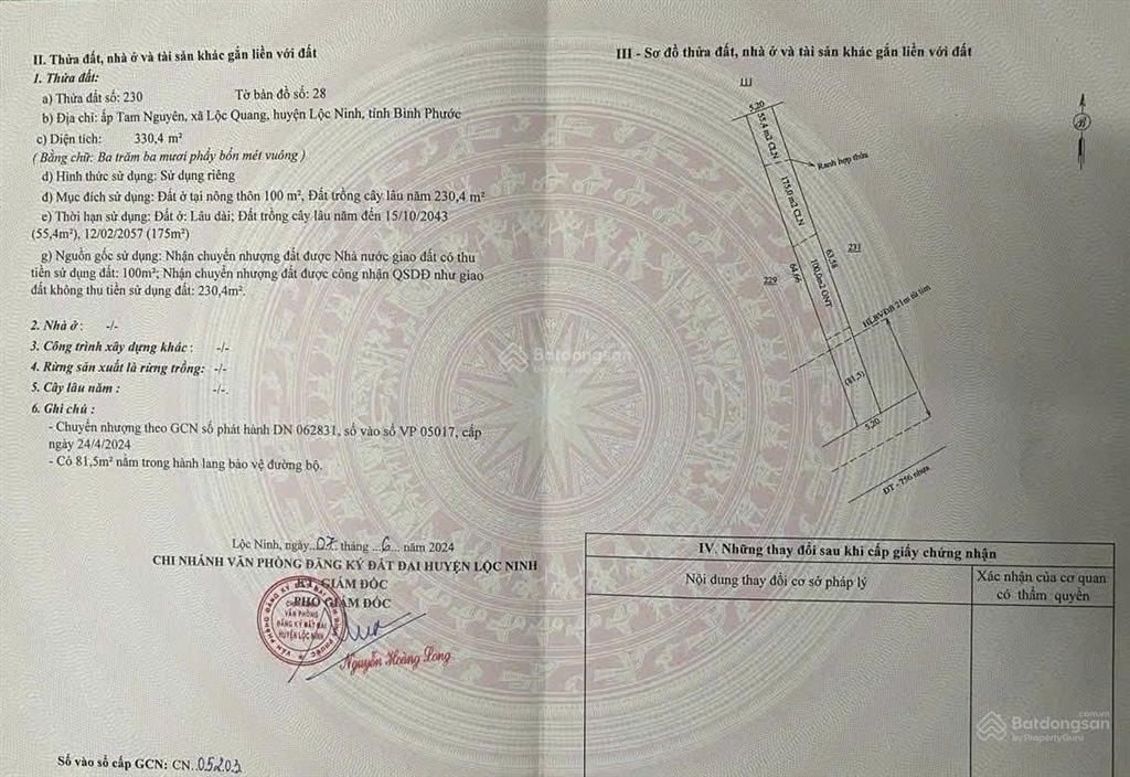 Đất nền tọa lạc tại xã Lộc Quang, huyện Lộc Ninh, tỉnh Bình Phước, với diện tích 330.4m². Đây là cơ hội tuyệt vời để đầu tư hoặc xây dựng nơi ở lý tưởng.
