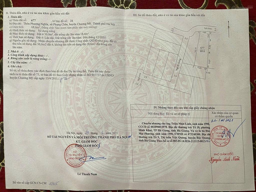 Đất nền tại xã Phụng Châu, Huyện Chương Mỹ, Hà Nội, diện tích 68,6 m², có 50m² thổ cư.