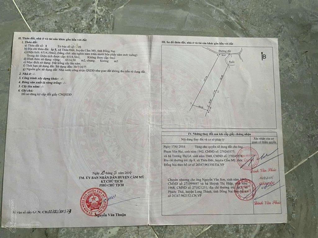 Đất nền tại Xã Thừa Đức, Cẩm Mỹ, Đồng Nai với diện tích rộng 6500m², giá chỉ 7,2 tỷ VND.