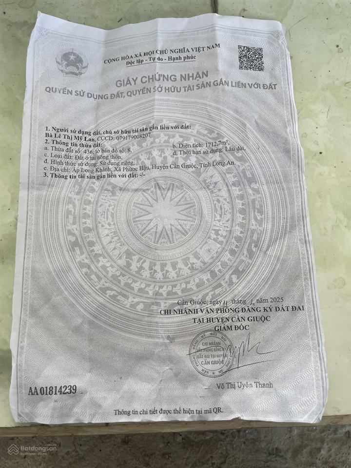 Đất nền thổ cư 2 mặt tiền tại Xã Phước Hậu, Cần Giuộc, Long An với diện tích 1.712,7 m², giá chỉ 10,6 tỷ VND. (6,2 trd/m²).