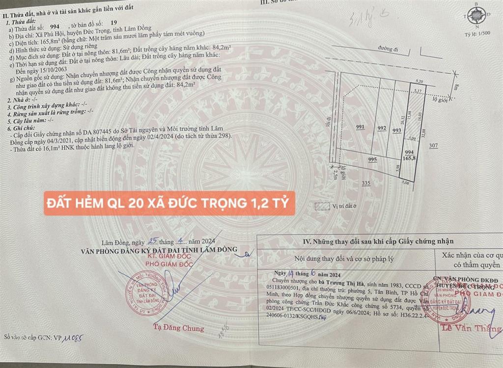 Nhanh tay sở hữu lô đất tiềm năng ngay trung tâm phát triển Đức Trọng!